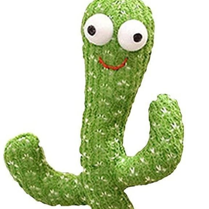 Interactive dancing cactus plush toy. Sings, dances, records and repeats. USB rechargeable. Perfect baby gift!